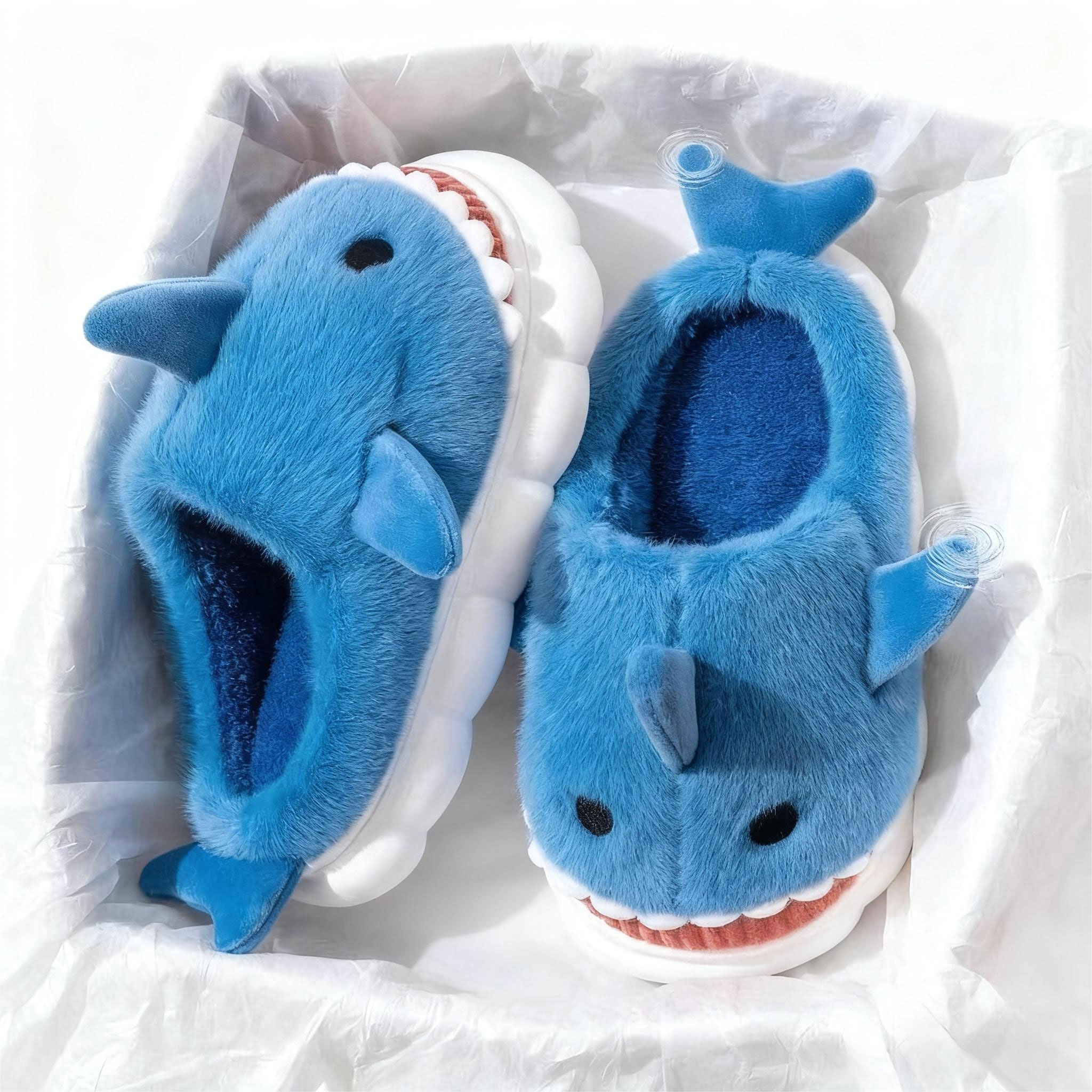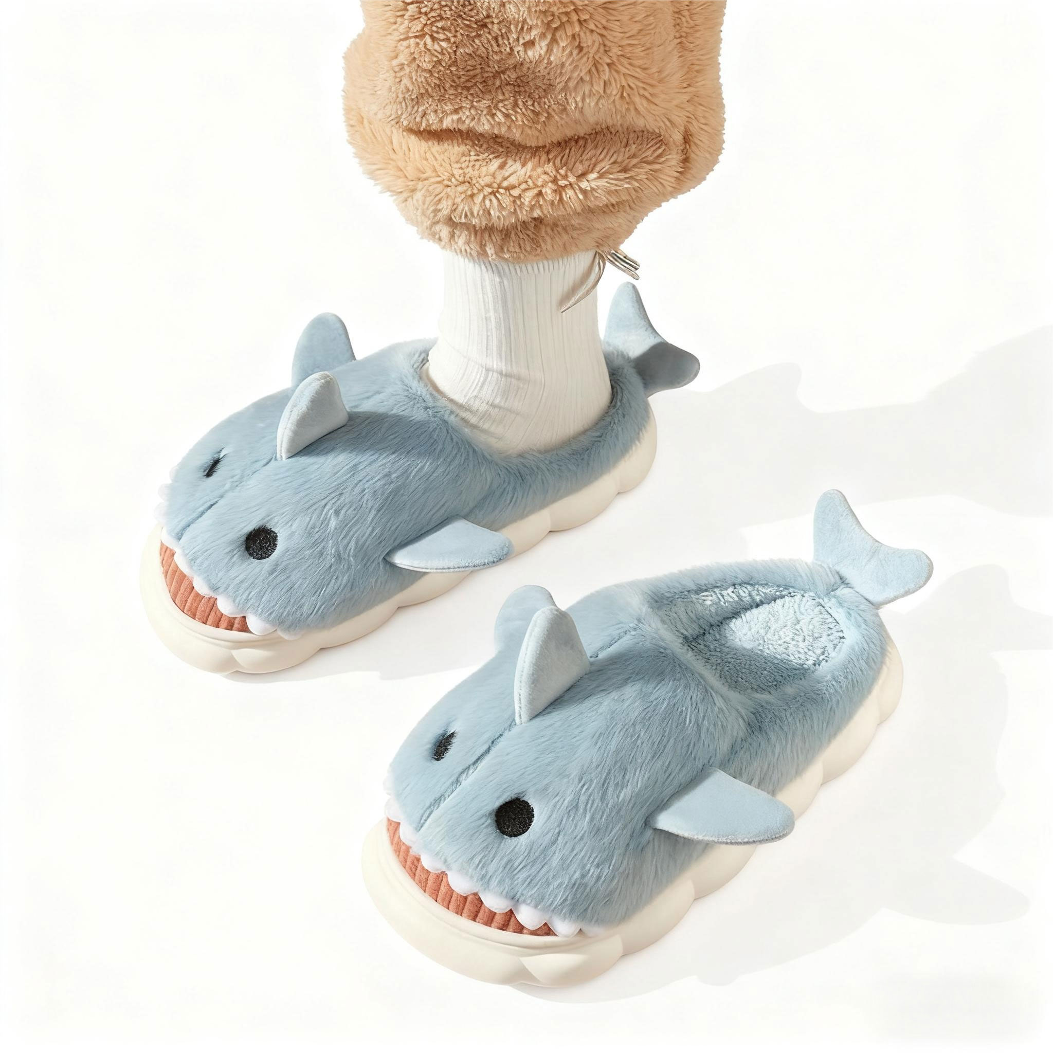 PRODUCTS > Thick shark 3D cartoon silent and warm slippers with added fleece
