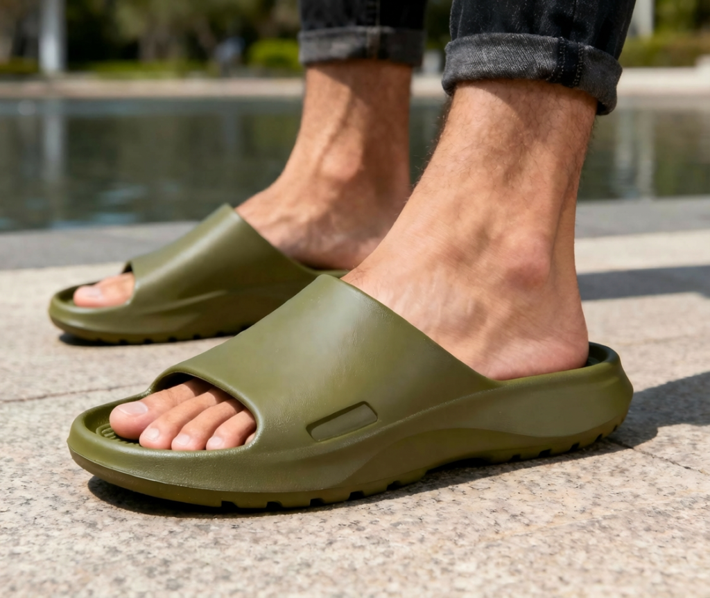 Our Air Flow Accent Slide is crafted for B2B buyers seeking a sandal that delivers superior breathability without sacrificing style. The upper features strategically placed perforations, mesh panels, or open‑weave straps that promote continuous airflow, keeping feet cool and dry in warm climates or during active use. Combined with decorative accent details—such as contrast stitching, metallic trims, embossed logos, or textured inlays—the design elevates the minimalist slide into a fashion‑forward piece. The sole is made from lightweight EVA or rubber, offering cushioning and shock absorption, while a soft padded footbed ensures comfort for all‑day wear. The slip‑on silhouette allows easy on-and-off access, and the open‑toe construction maximizes ventilation. Ideal for beach holidays, poolside lounging, travel collections, and urban summer styles, Air Flow Accent Slide pairs effortlessly with relaxed resort wear and casual streetwear. Available in customizable materials, colors, accent finishes, and optional branding (printed or embossed logo, custom insole label, branded packaging), it can be tailored to match brand identity and target markets. With flexible MOQ, private label services, and competitive wholesale pricing, it’s a high‑perceived‑value product for global retailers aiming to offer footwear that blends cooling performance with distinctive design.