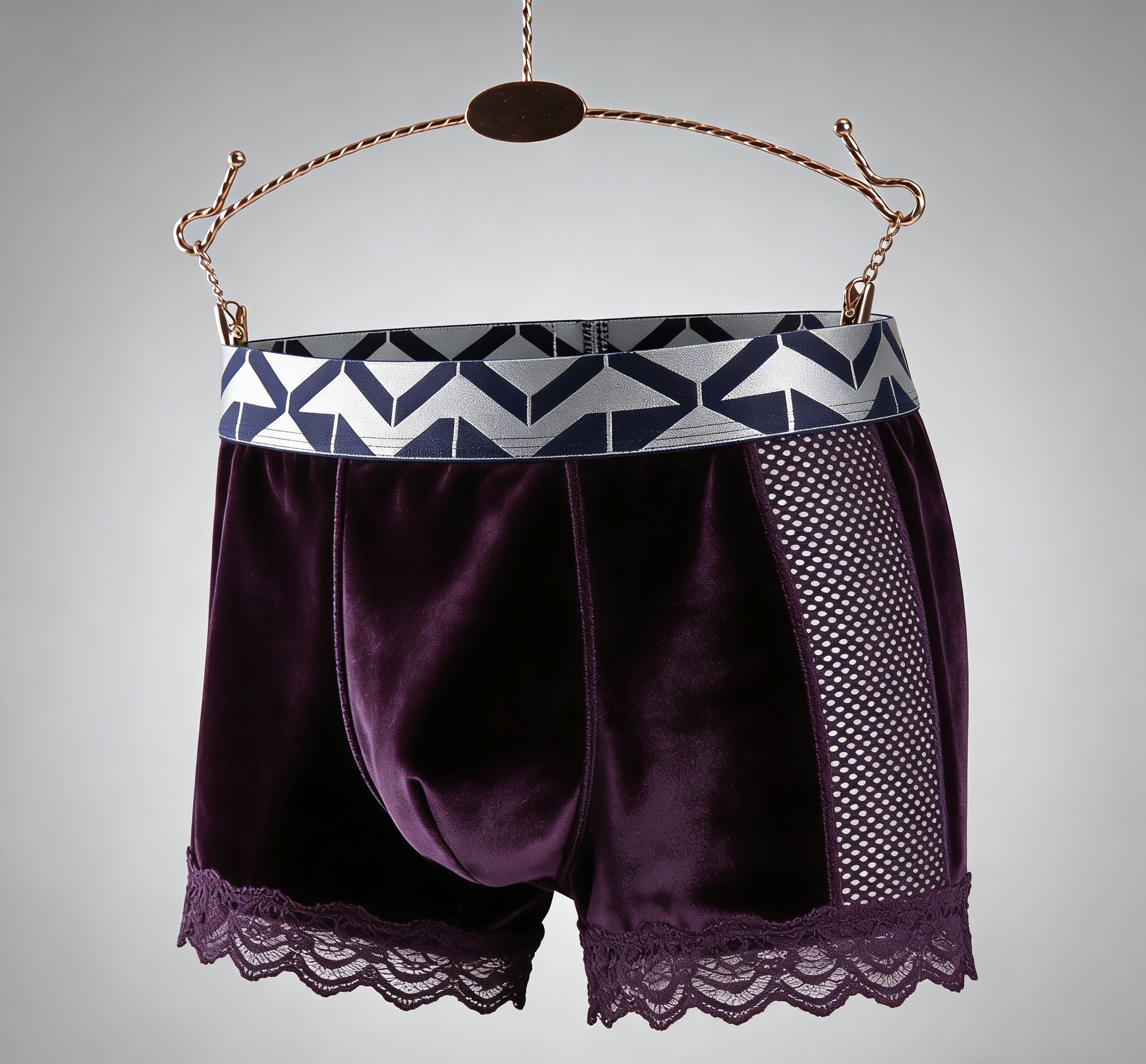 Velvet Mesh Lace Trim Stretch Boxer Shorts