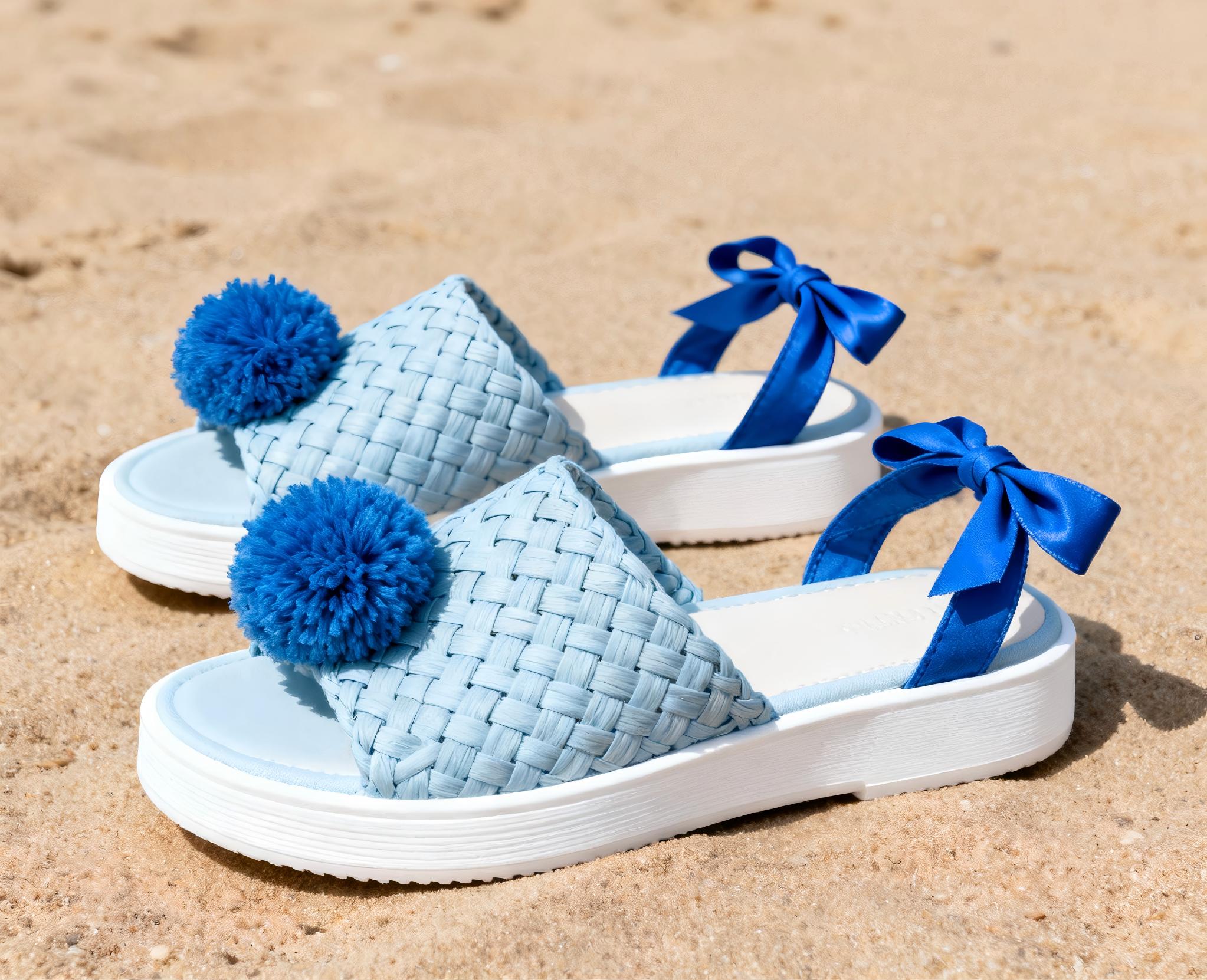 Woven Pom-Pom Slipper