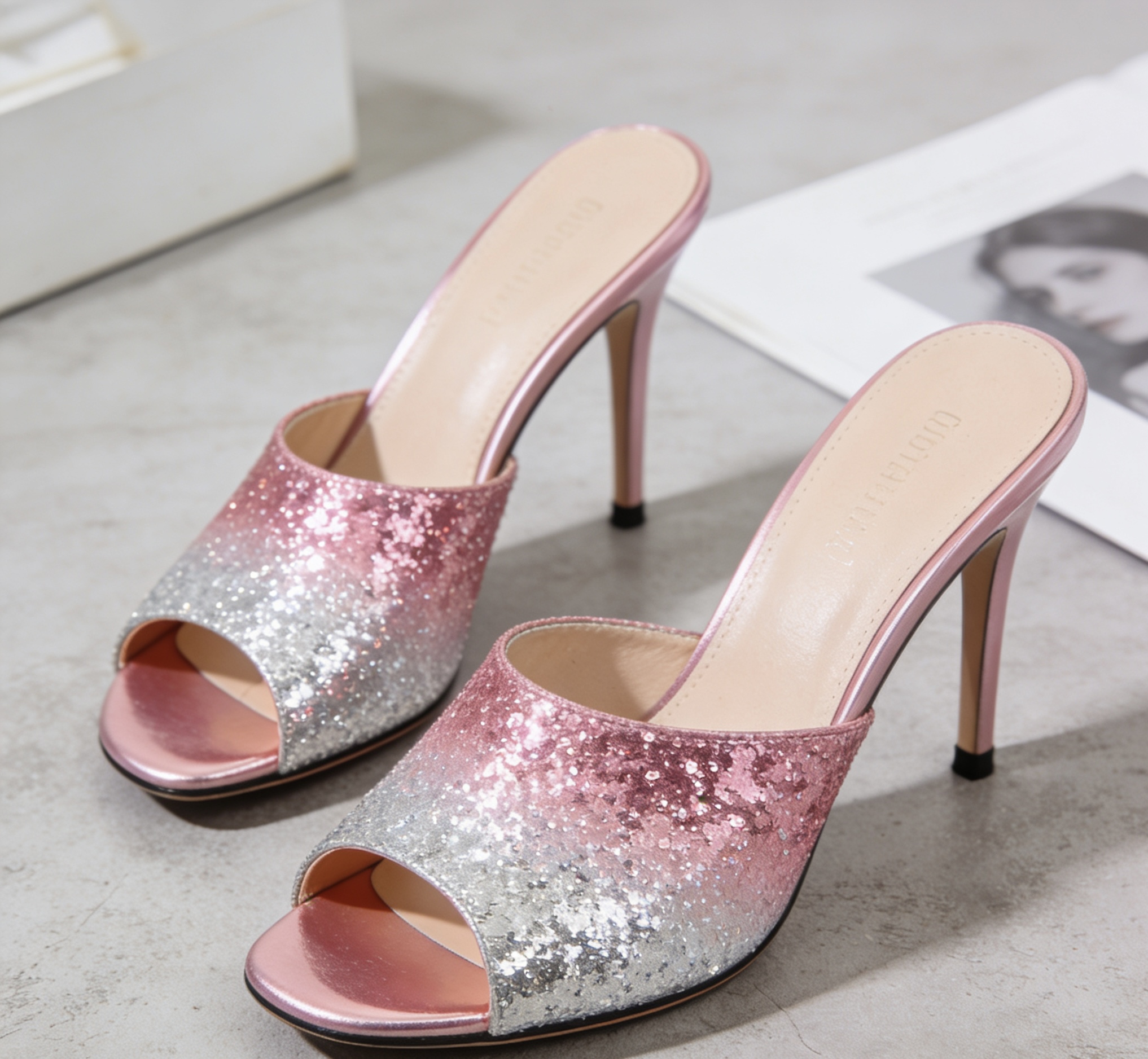 Pink Silver Ombre Glitter Stiletto Mule Sandals