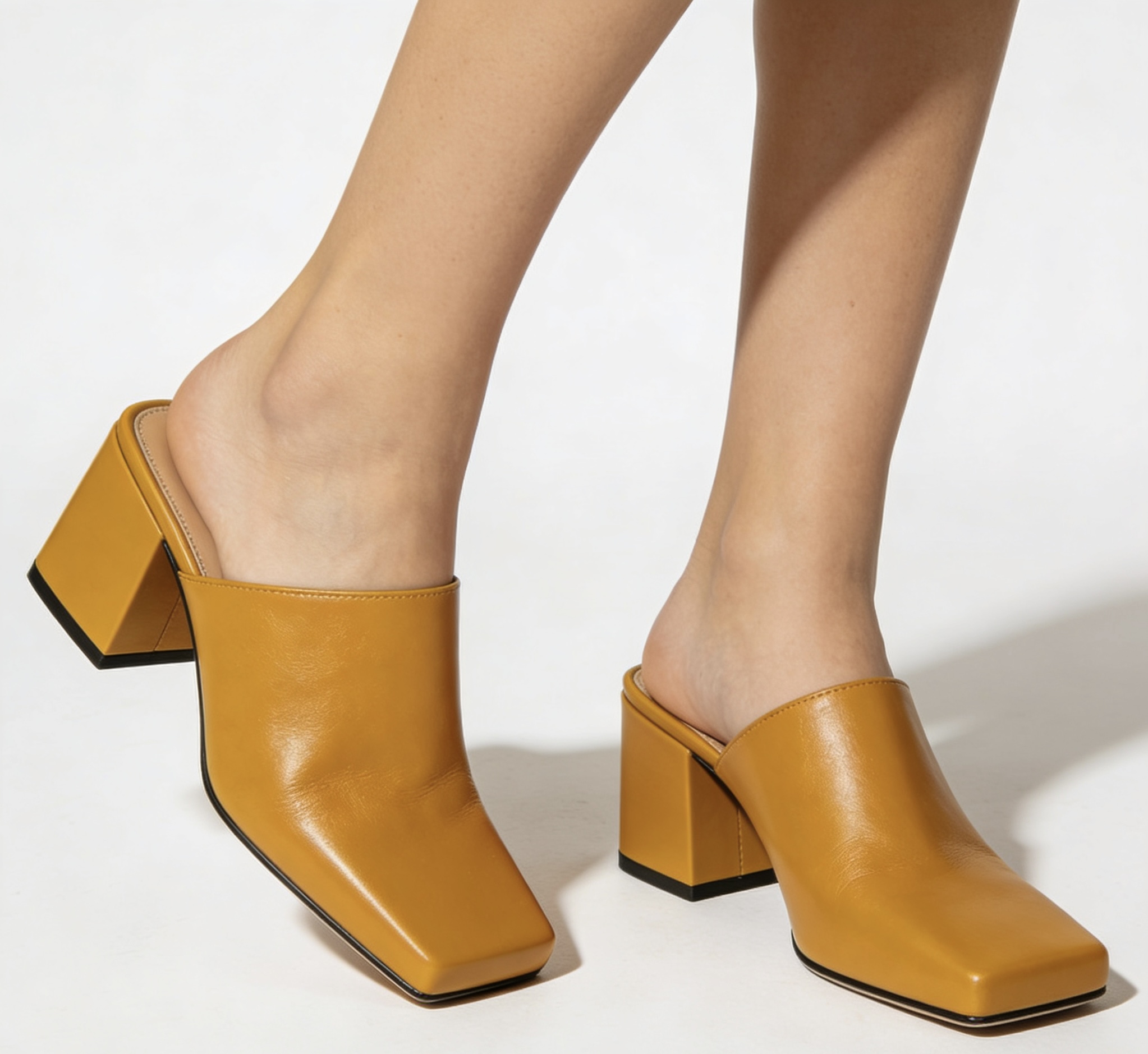 Genuine Leather Block Heel Mules
