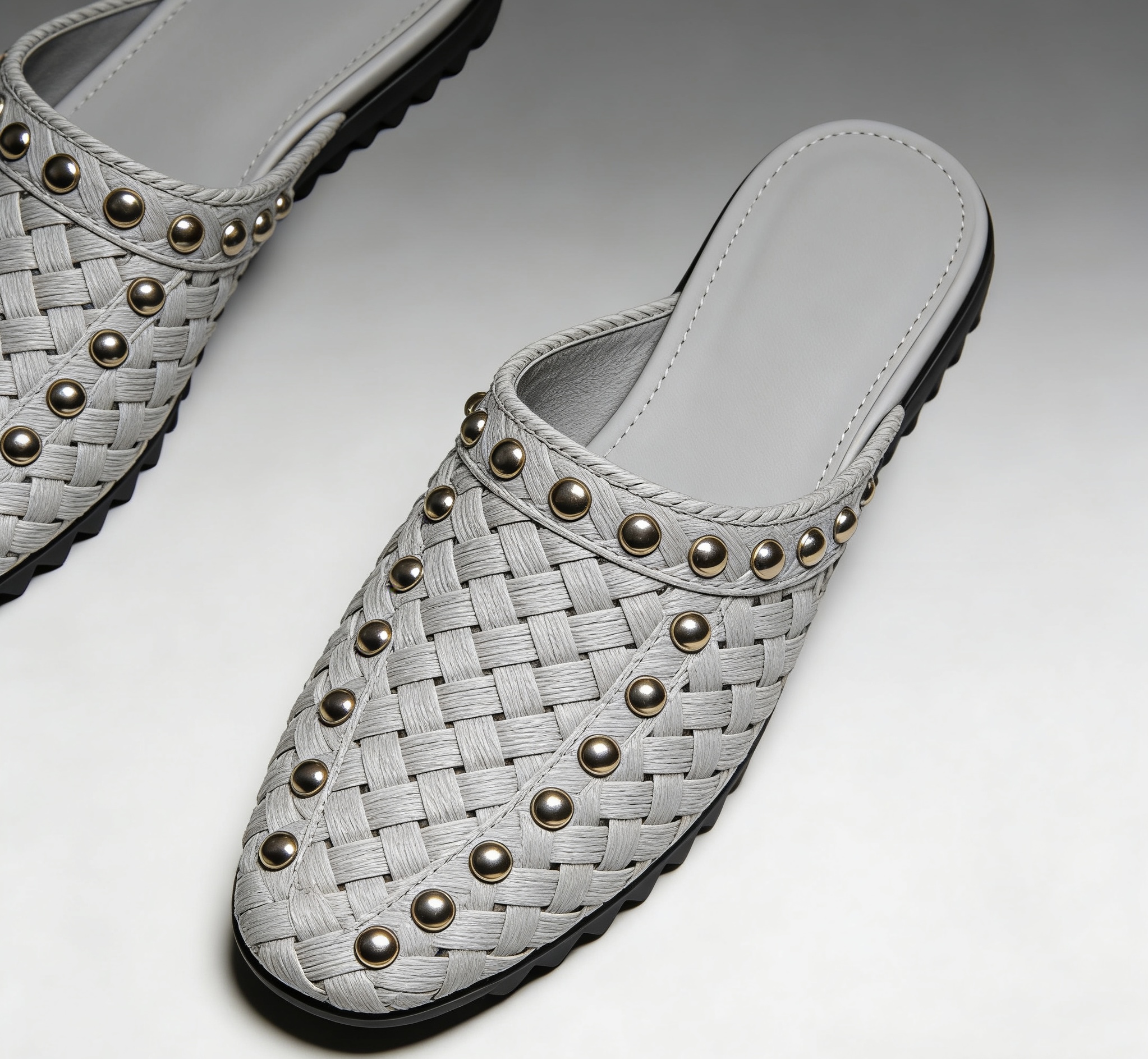 Grey Woven Leather Studded Mule