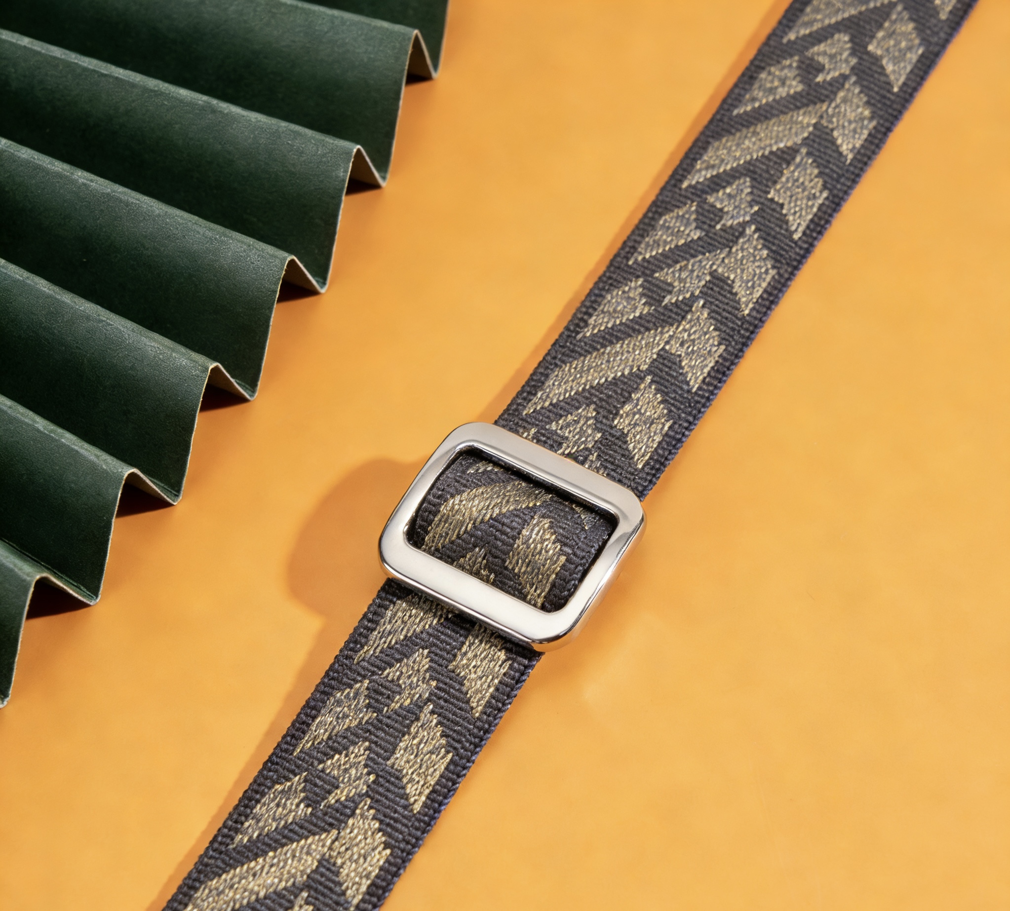 Dark Grey Gold Houndstooth Jacquard Webbing Strap