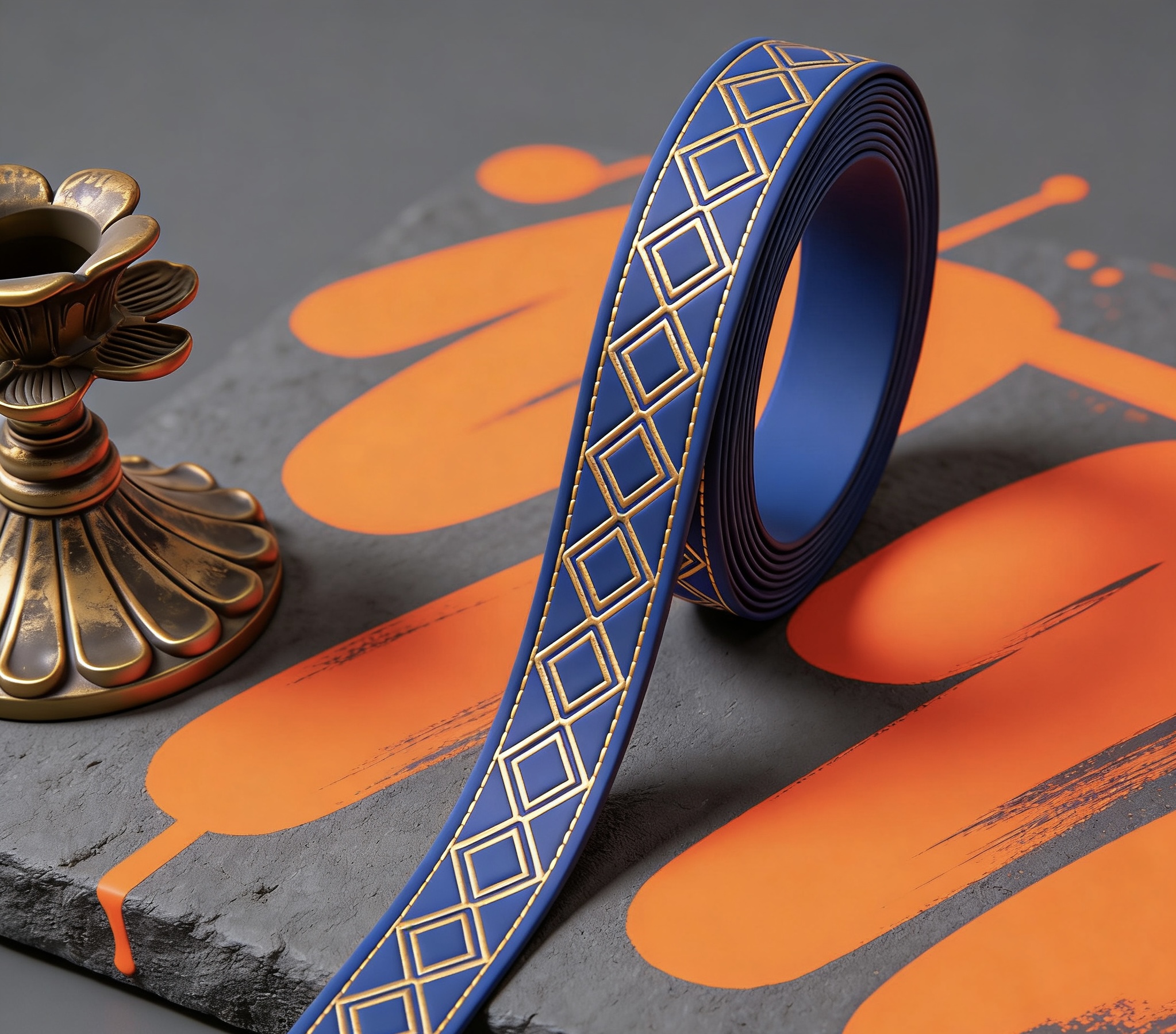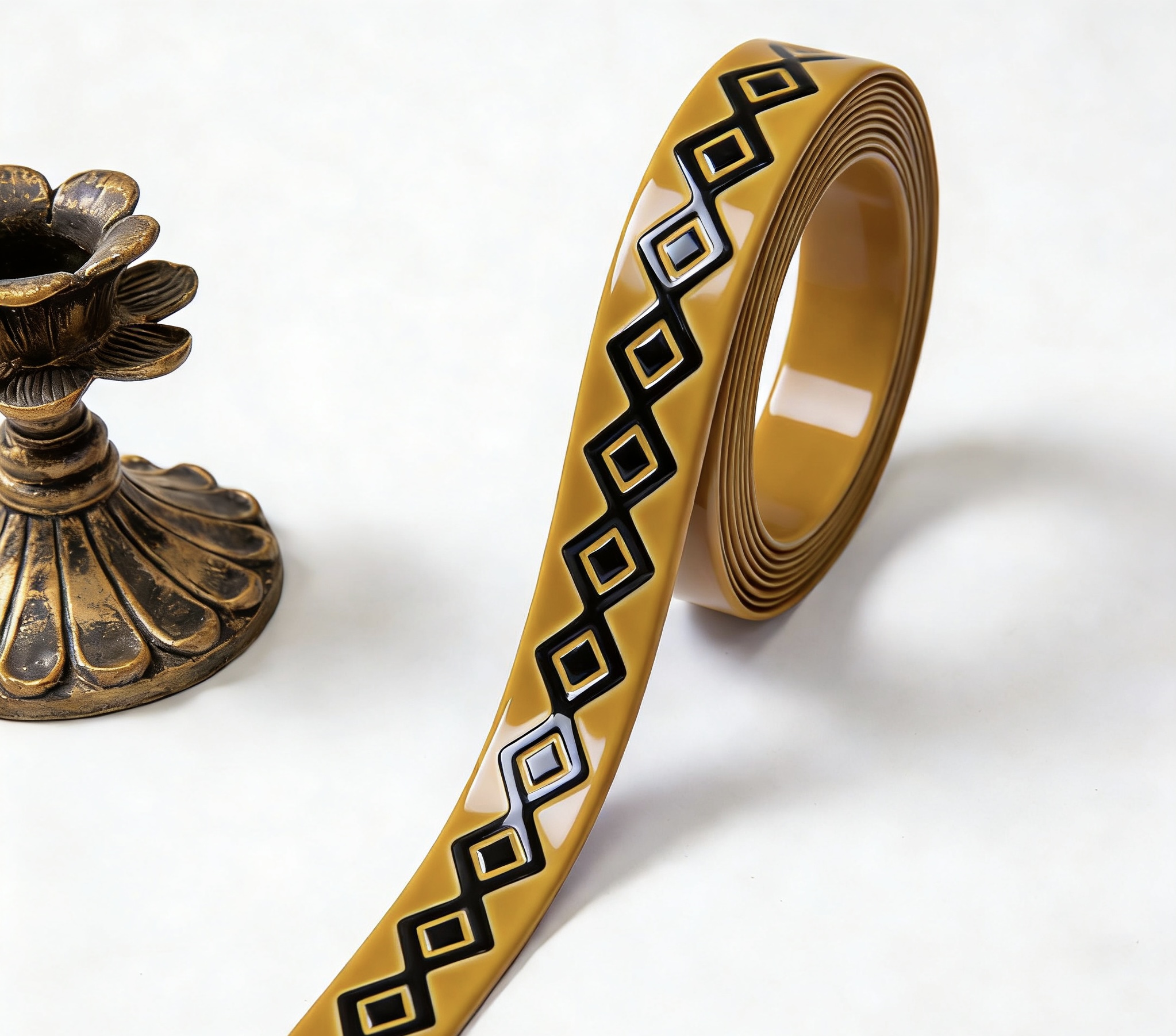 Embossed PU Ribbon with Gold Geometric Trim