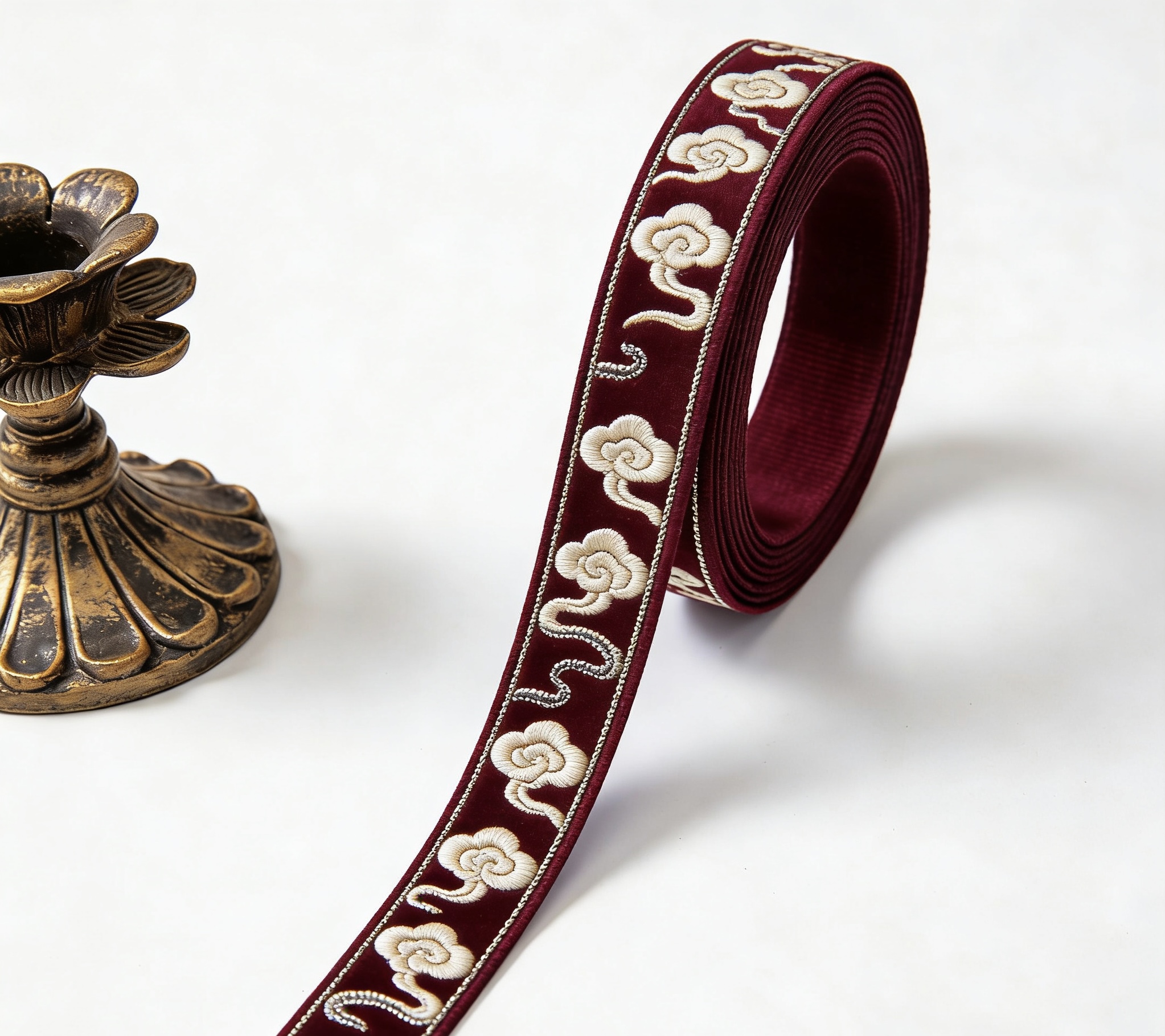Embroidered Cloud Pattern Grosgrain Ribbon