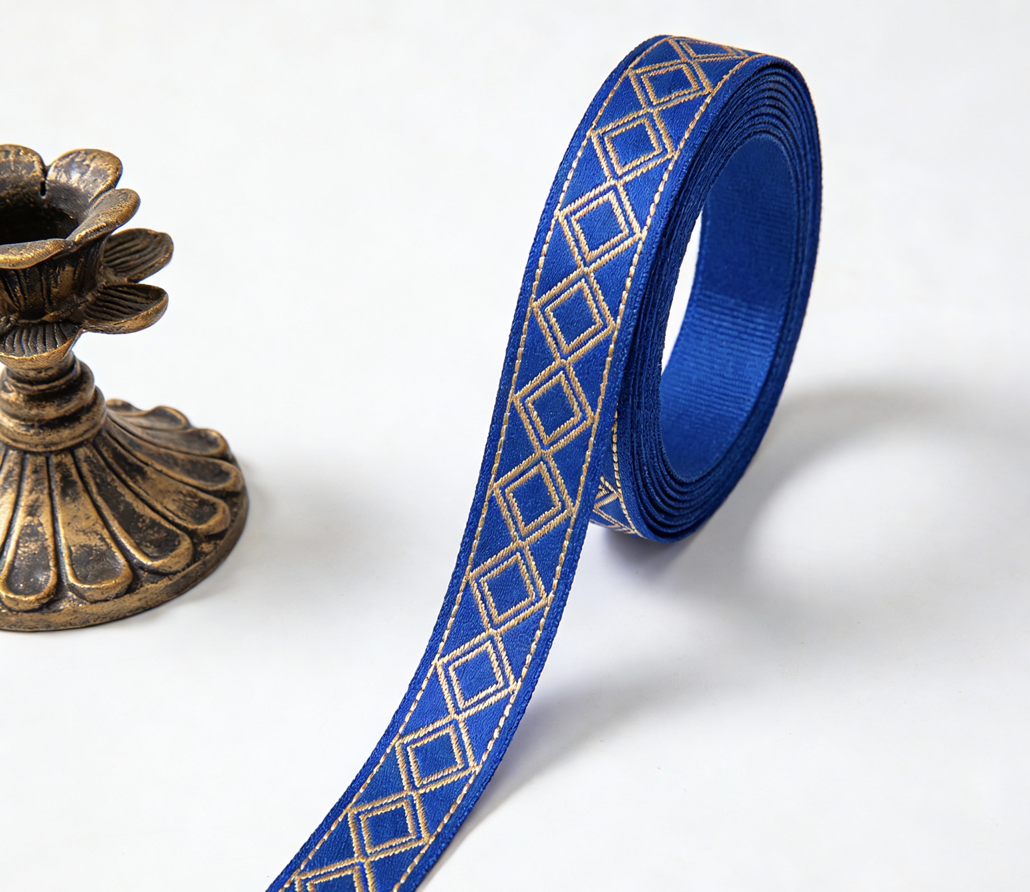 Gold Geometric Jacquard Grosgrain Ribbon (Royal Blue)