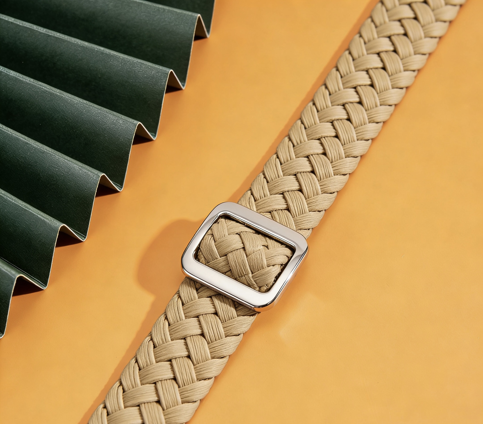 Khaki Woven Braided Polyester Webbing Strap