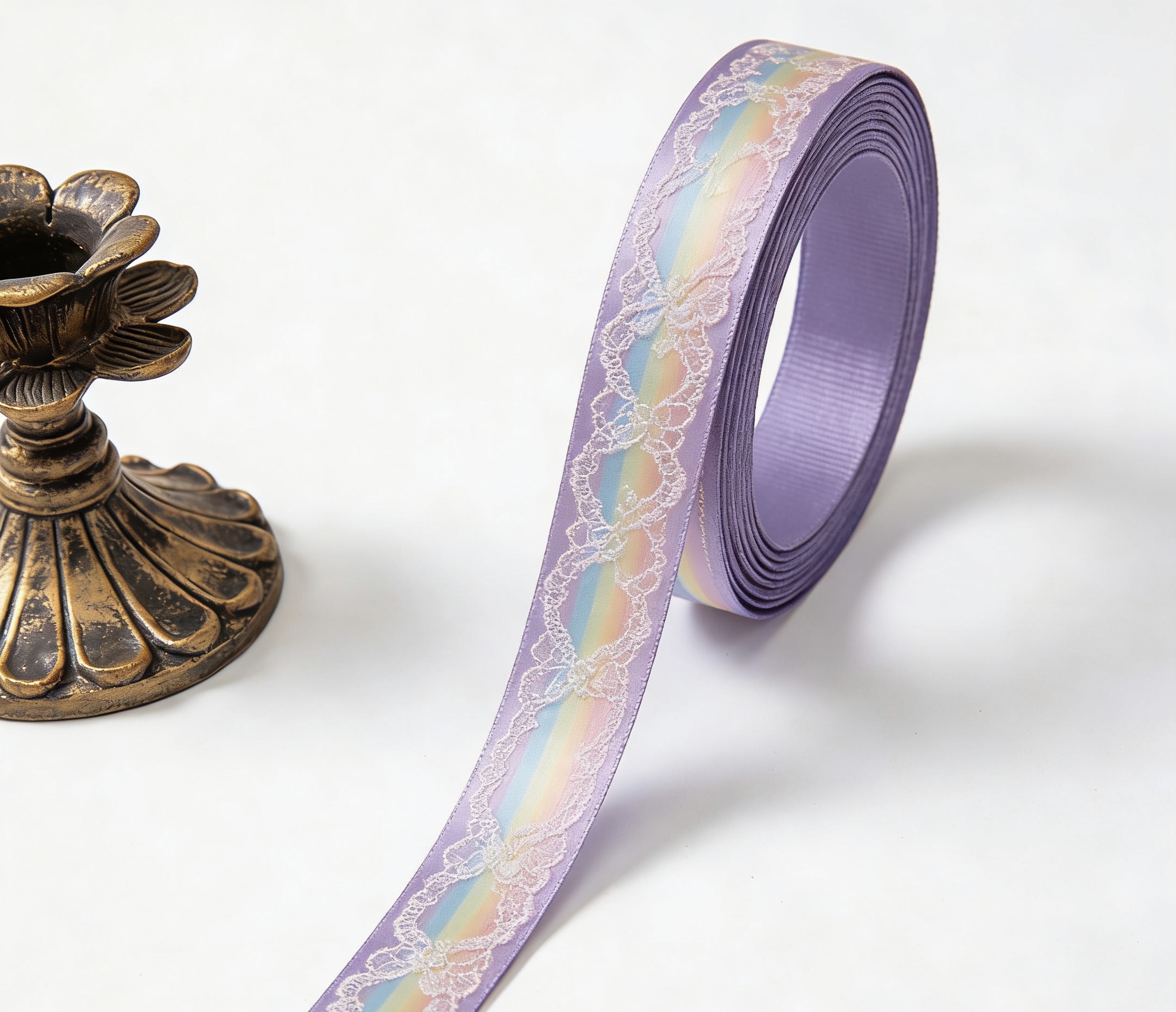 Lace & Iridescent Rainbow Satin Ribbon