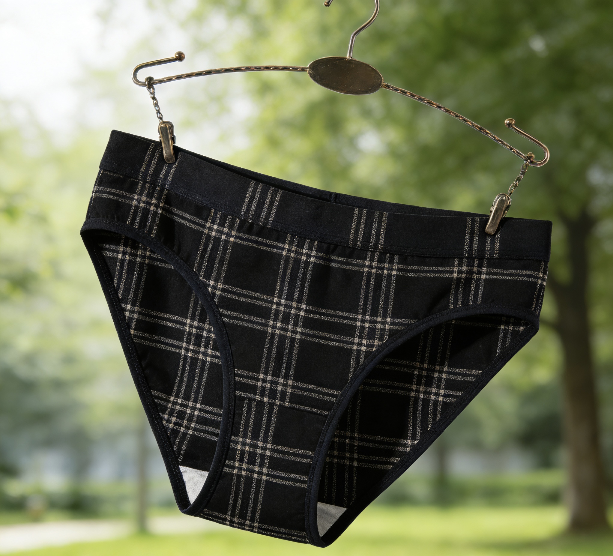 Black Plaid Cotton Bikini Briefs