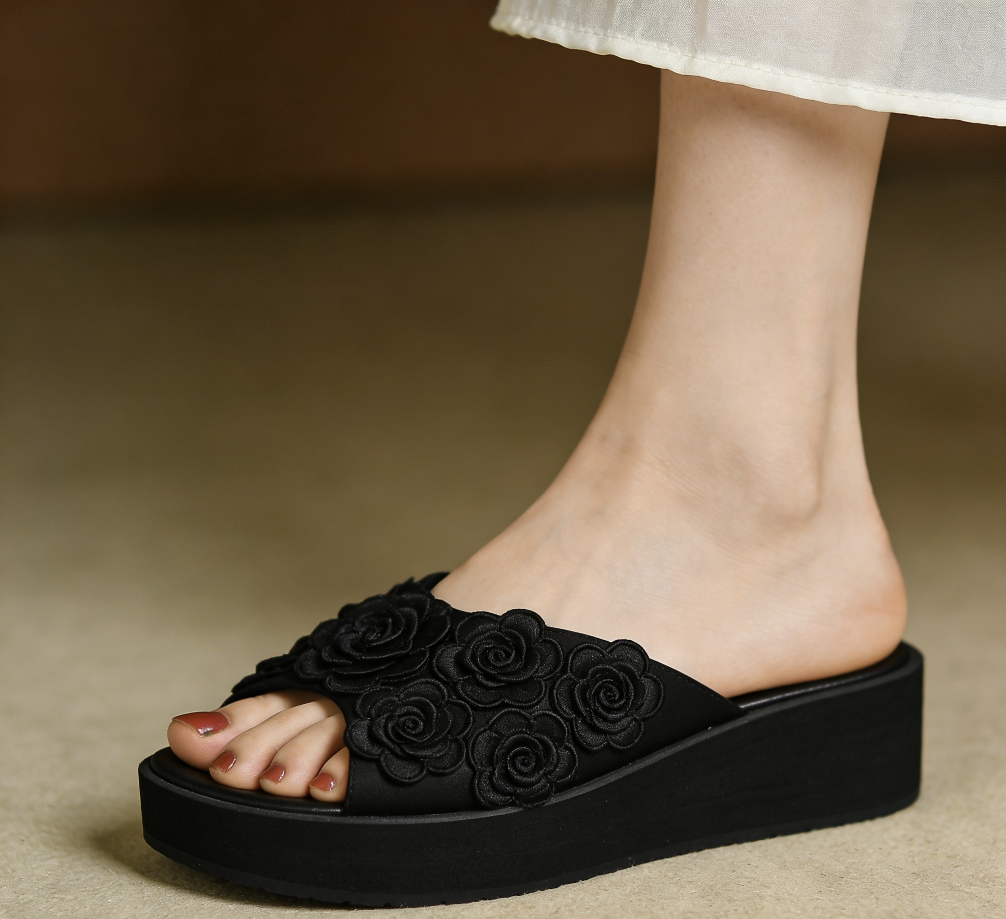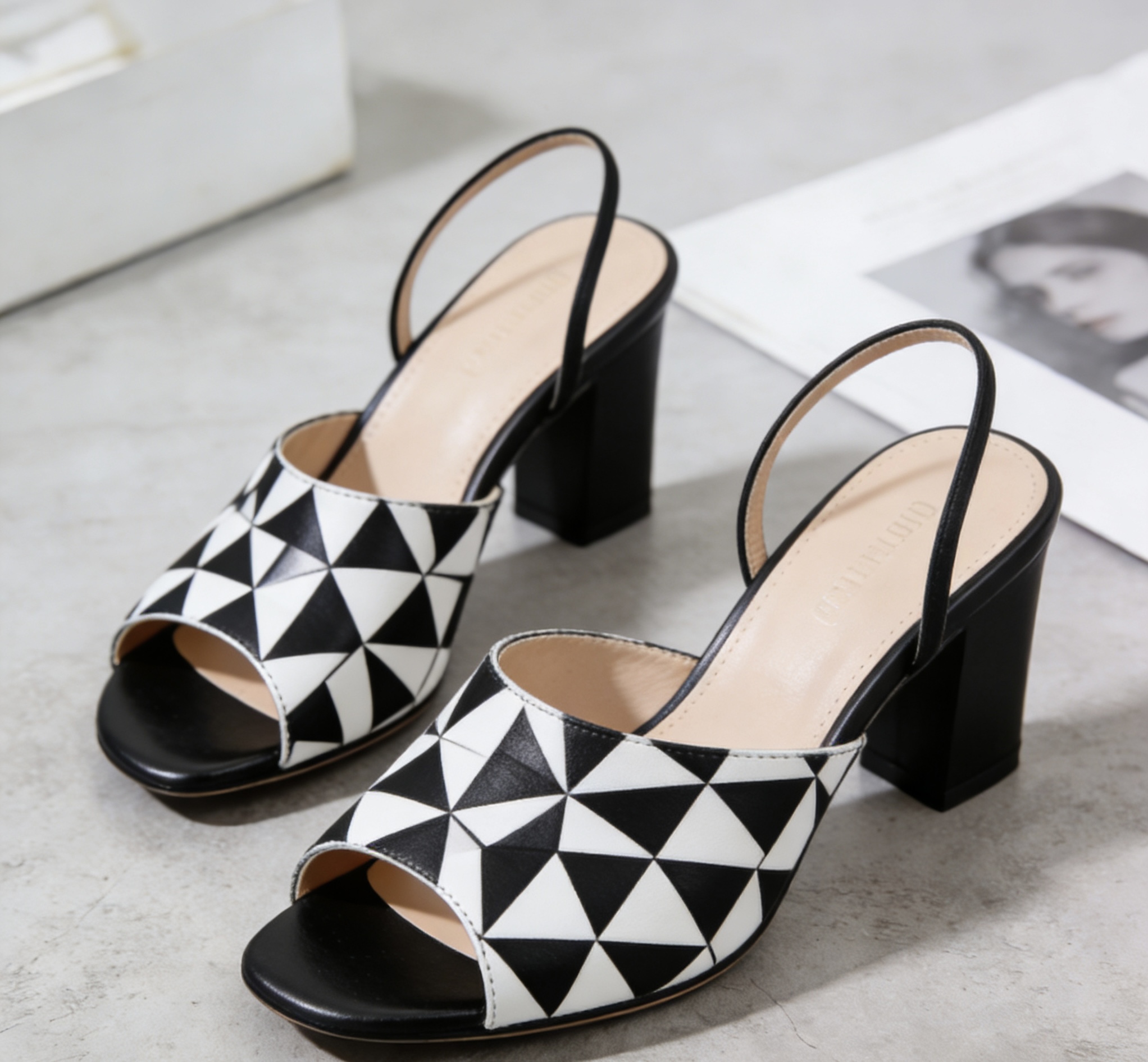 Black & White Geometric Leather Block Heel Slingback Sandals