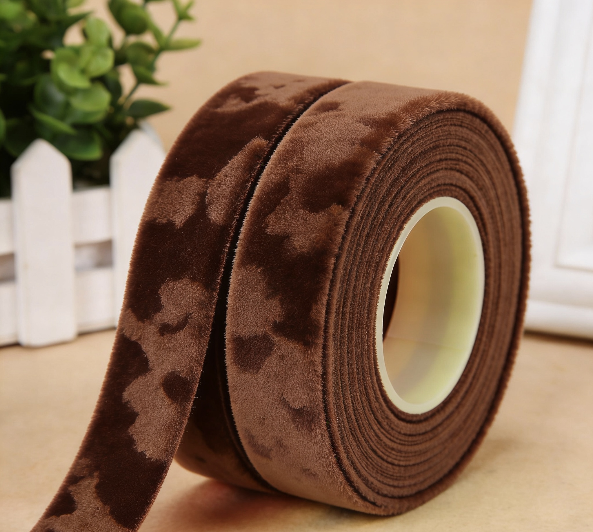 Brown Polyester Jacquard Ribbon with Golden Floral Pattern