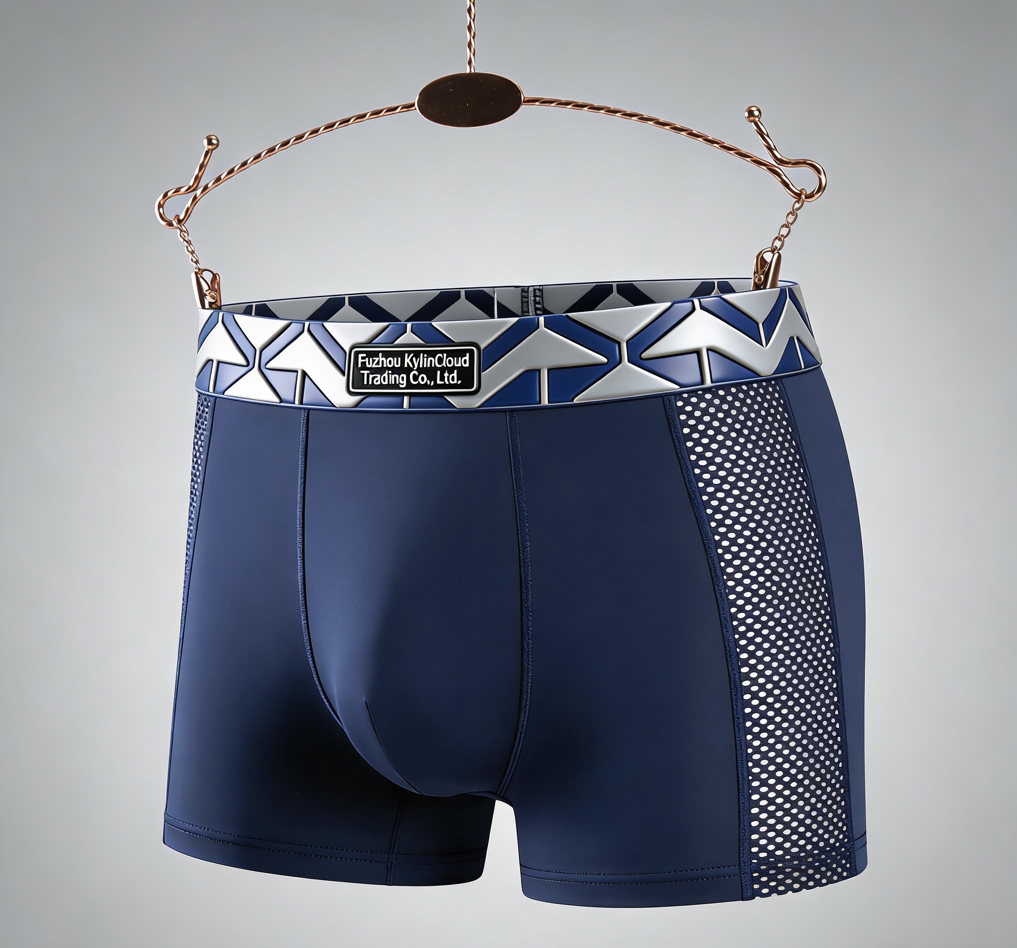 Mesh Panel Striped Ice Silk Men’s Boxer Briefs