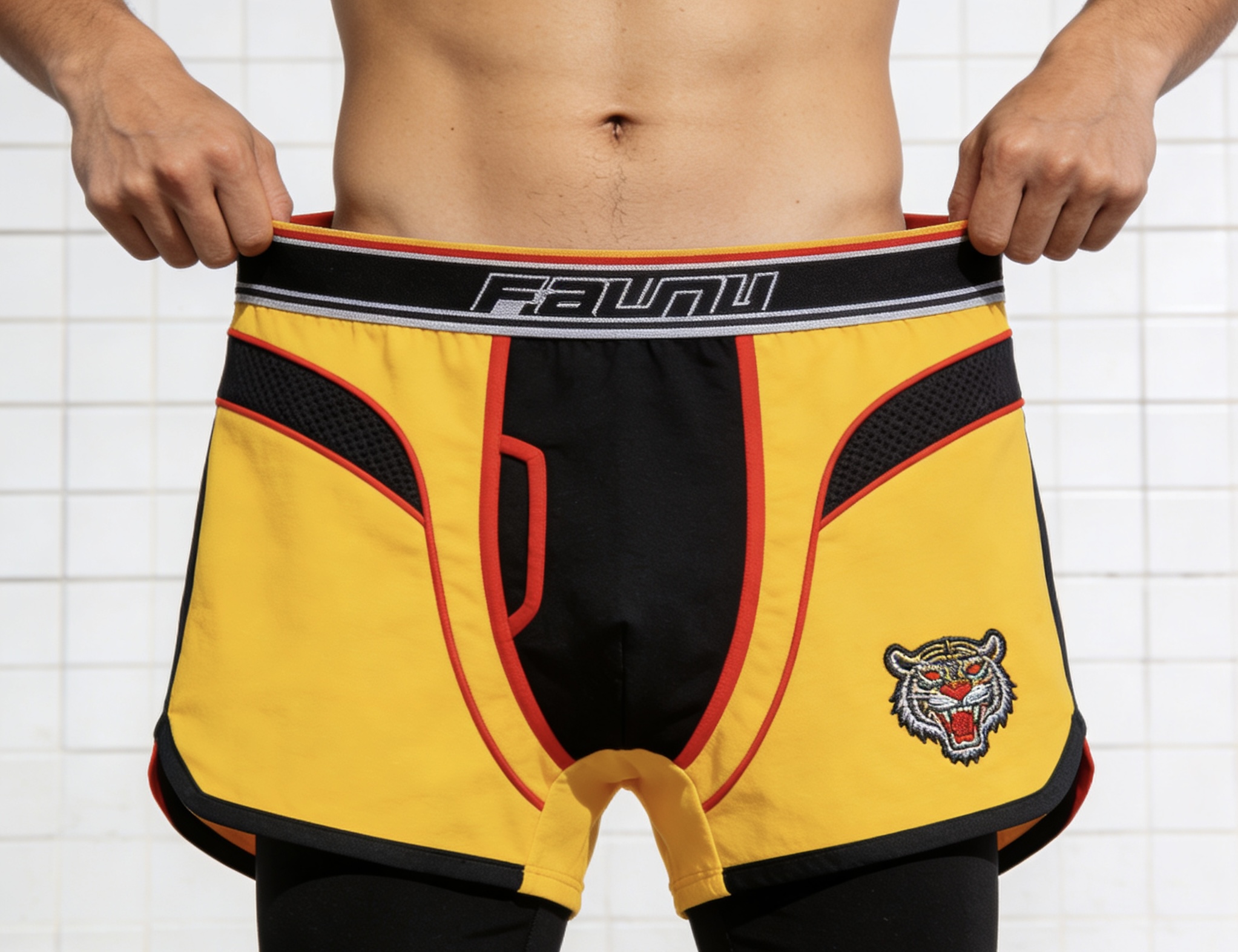 Quick-Dry Nylon Mesh Tiger Embroidered Boxer Shorts