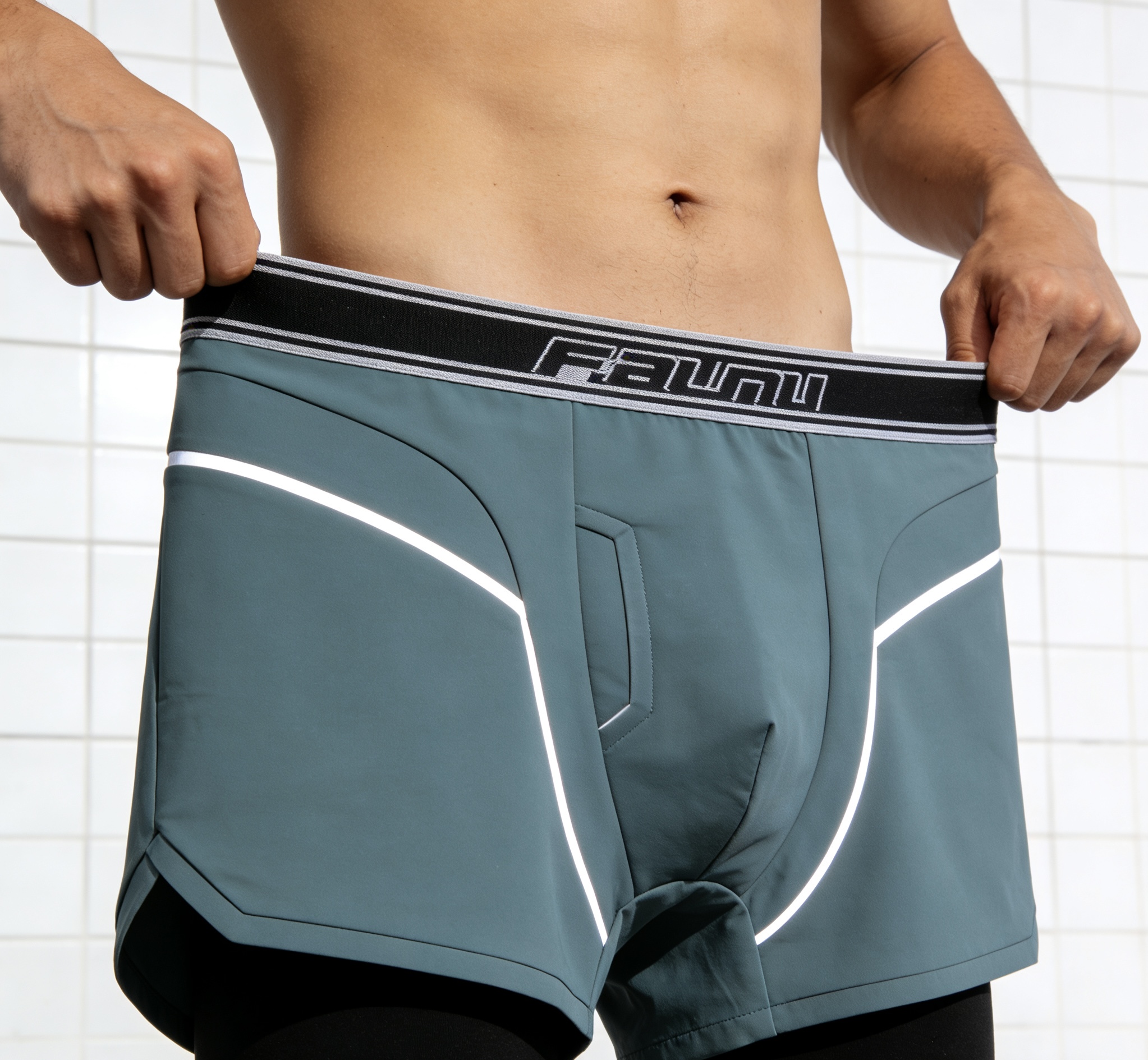 Quick-Dry Nylon Reflective Line Boxer Shorts